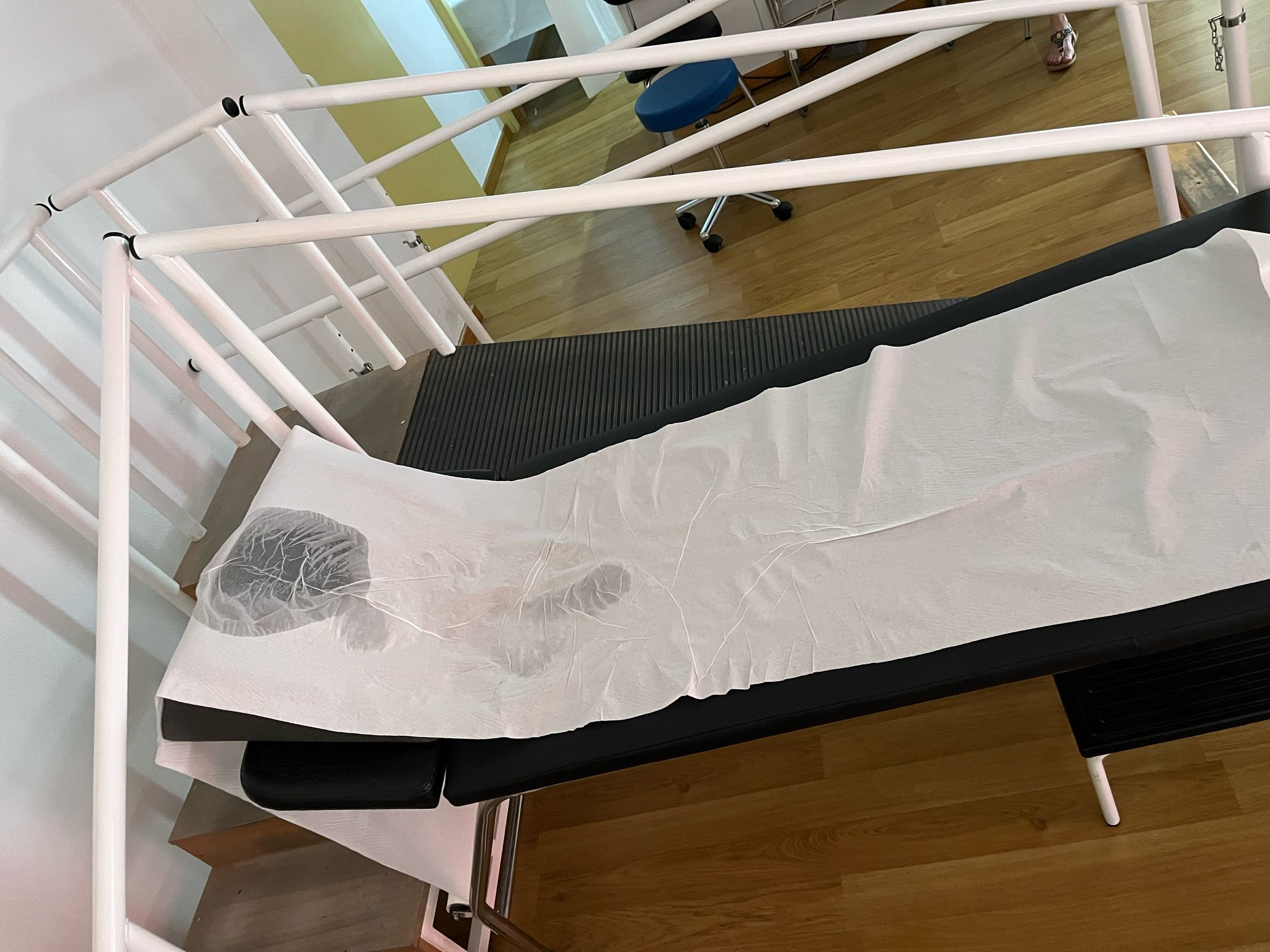 El Sindicato de Enfermería critica que la seguridad laboral cobra un papel secundario para esta Dirección, pero también la seguridad de los pacientes y su dignidad. (Véase cómo queda una camilla tras la realización de las técnicas realizadas por un profesional de Fisioterapia).
