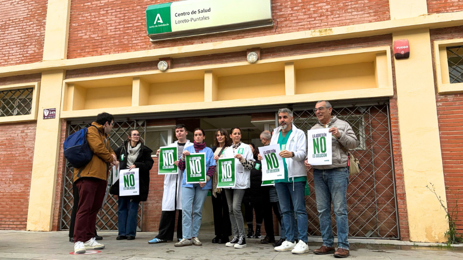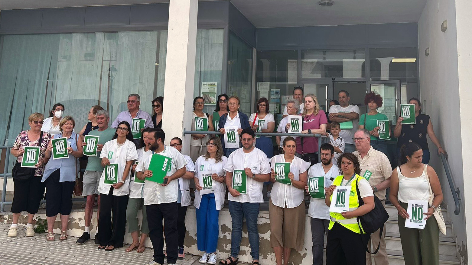 Concentración contra agresiones en el centro de salud de Benalup, en Cádiz.