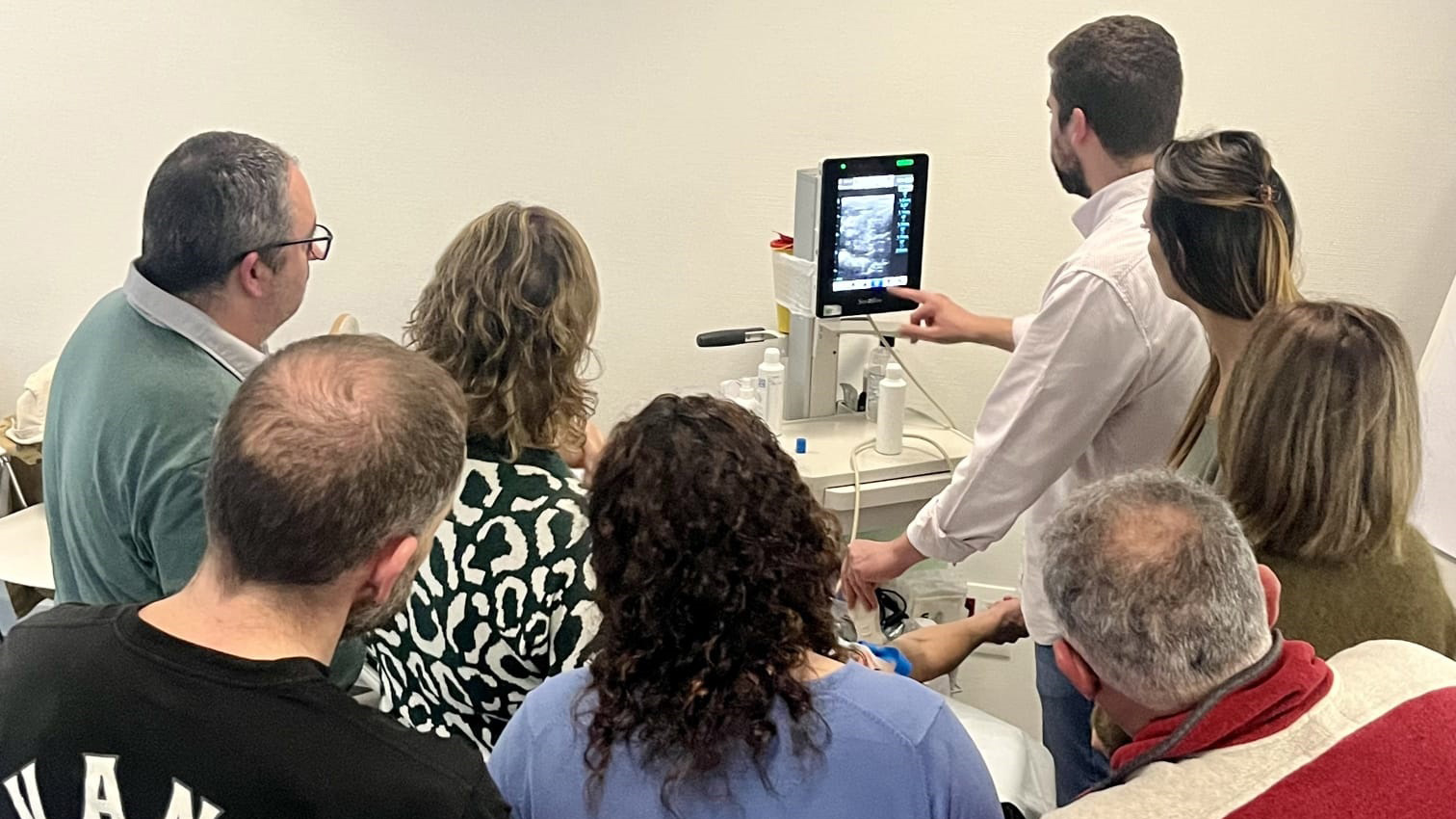 Durante la sesión, se abordaron aspectos clave como el manejo adecuado del ecógrafo, la correcta colocación del equipo para el rastreo de las zonas de punción y las diferentes opciones de canalización en función del acceso vascular necesario. Asimismo, se puso en valor la utilidad de esta técnica no invasiva como apoyo en la canalización de accesos vasculares difíciles.